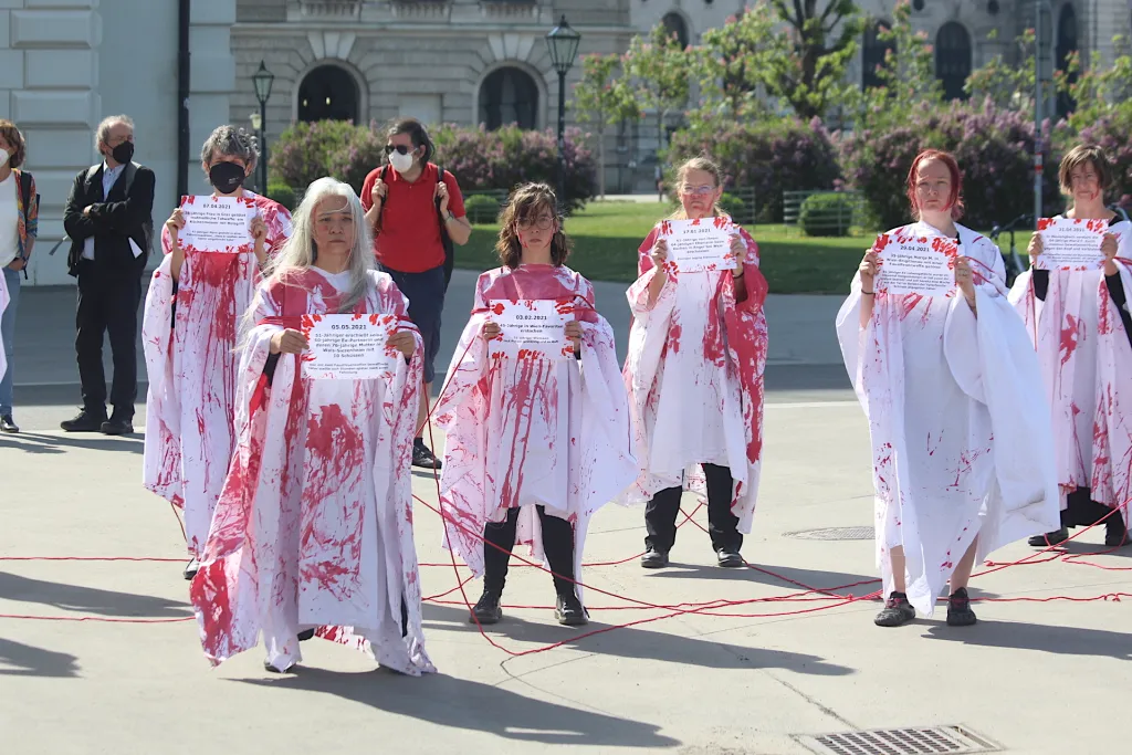 eine Künstlerische Intervention und Kundgebung in Kooperation mit dem Dschungel Wien auf dem Platz der Menschenrechte, Mariahilfer Straße 1, 1070 Wien