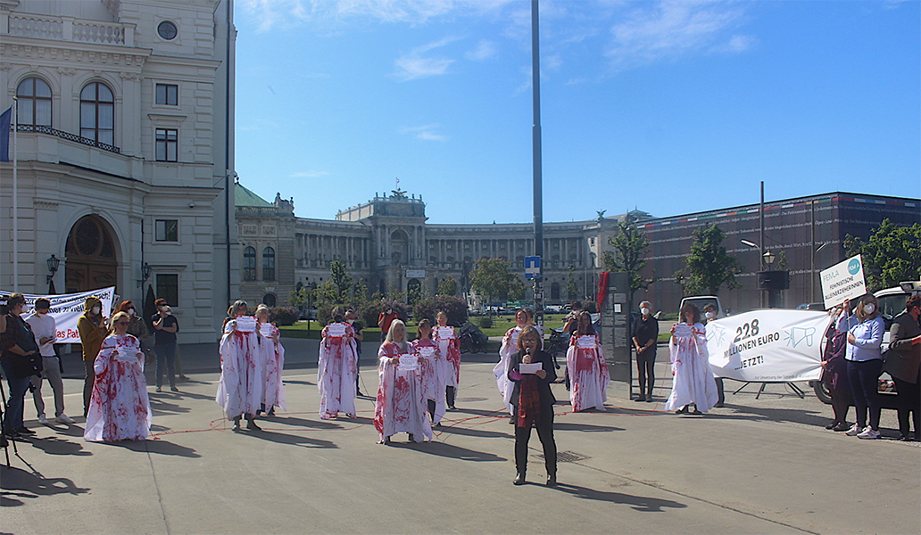 Um ihre Kritik am ungerechten Budget zu formulieren, protestierten der Frauenring und die Allianz GewaltFREI Leben am Donnerstag dem 18. 11. 2021 vor dem Parlament.