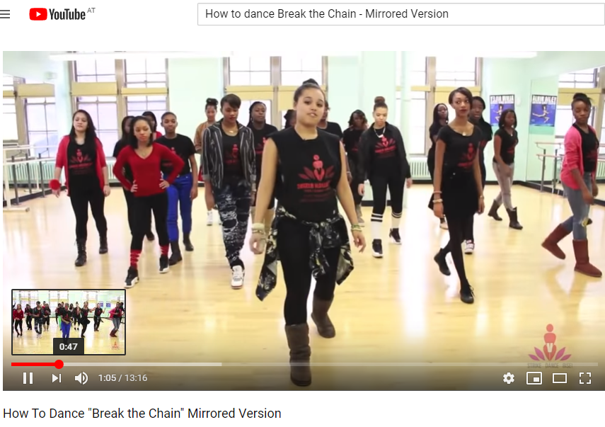 Die gespiegelte Choreographie auf YouTube erleichtert das Lernen von Break the Chain. Screenshot: OBRA.