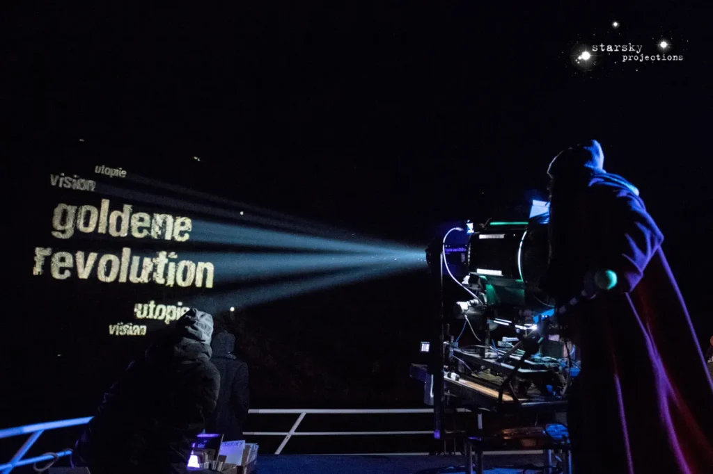 Hinaus zur Goldenen Revolution geht es am Abend des 16. November auf Geheiß von starsky – mit Großbildprojektion, Interventionen und Diskussionen im Karl Seitz Hof. Foto: Violetta Wakolbinger
